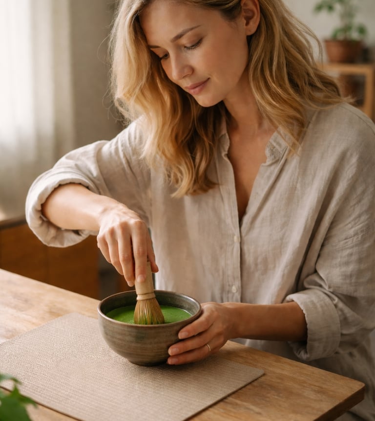The act of preparing matcha naturally slows breathing and helps restore balance.